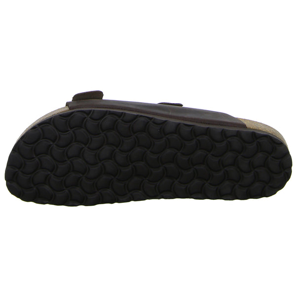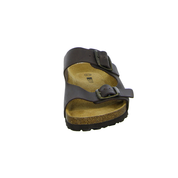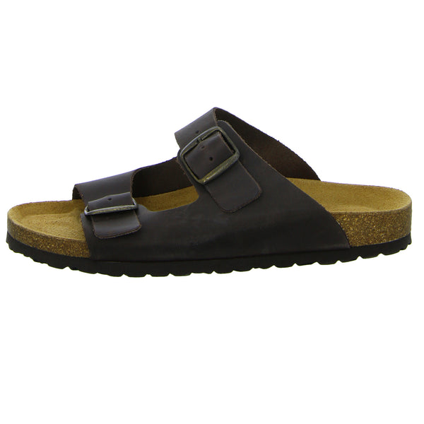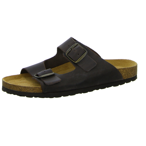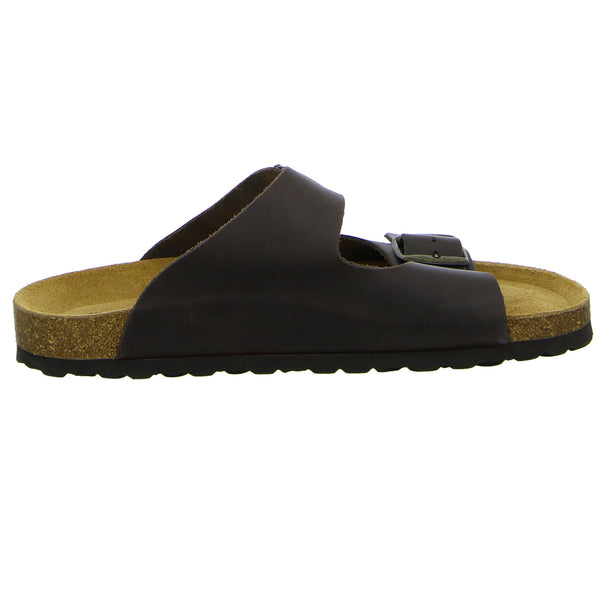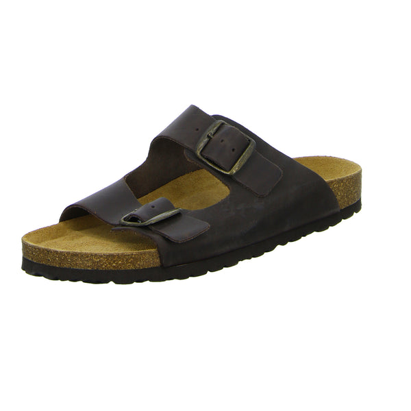 Zwei verstellbare Riemen über dem Rist ermöglichen ein optimales Anpassen an den Fuß. Das Obermaterial besteht aus hochwertigem dunkel braunem glattem Leder. Der Schuh ist mit einem Futter und einer Decksohle aus Leder ausgestattet. Für zusätzliche Dämpfung und somit hohen Tragekomfort sorgt die Weichbettung unter der Lederdecksohle. Die Laufsohle besteht aus Synthetik.