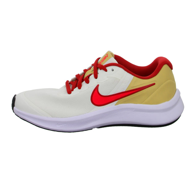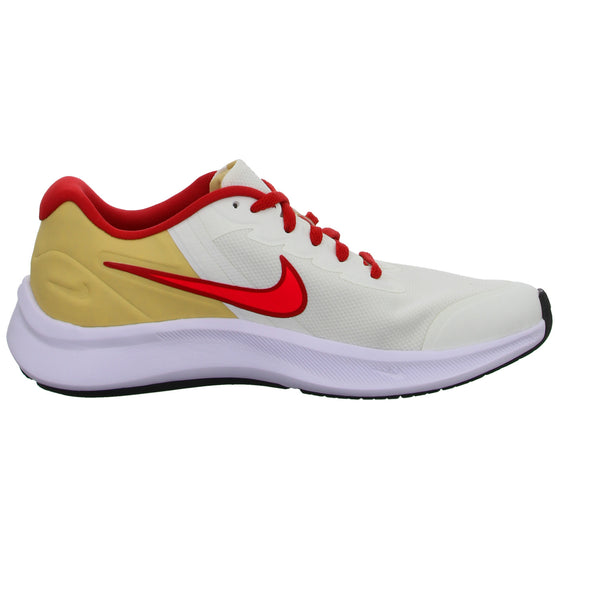 Das Obermaterial besteht aus hochwertigem im Grundton offwhitem Textil und mehrfarbigem Synthetik.