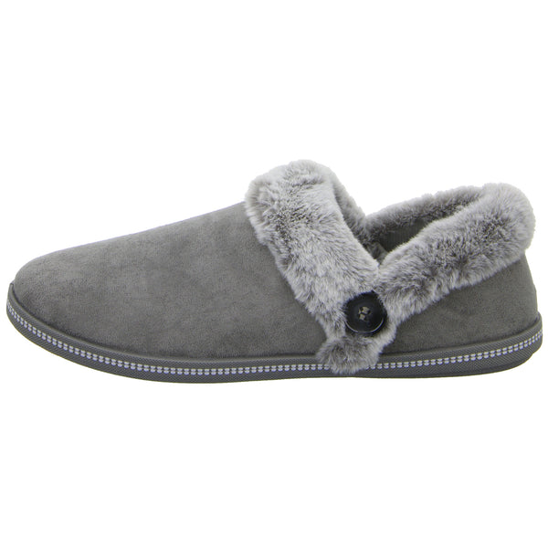 Das Obermaterial besteht aus hochwertigem mittel grauem rauem Kunstleder. Der Innenfutter ist aus Textil und die Decksohle aus langem Kunstfell gefertigt. Die Laufsohle besteht aus Synthetik. Skechers Memory Foam™ ist eine ultraleichte und sehr flexible Decksohle, die sich optimal den Füßen des Trägers anpasst.