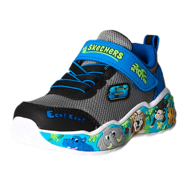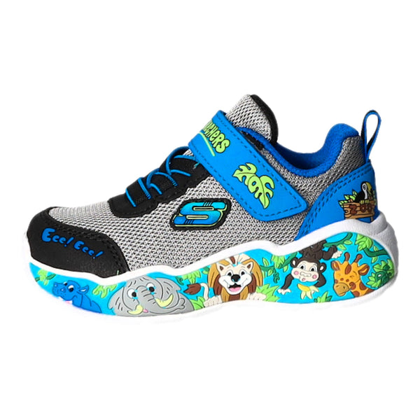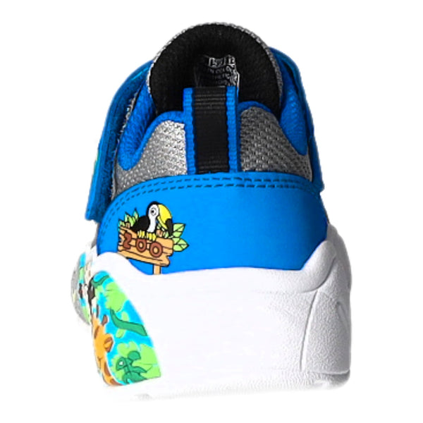 Das Elastikband und der Klettverschluss garantieren eine optimale Passform. Wunderschönes Obermaterial! Gefertigt aus grauem Textil und mehrfarbigem Kunstleder. Der Schuh ist mit einem textilen Futtermaterial ausgestattet. Dank weicher textiler Decksohle bietet der Schuh einen sehr guten Tragekomfort. Die Laufsohle besteht aus Synthetik und hinterlässt keine Spuren auf Hallenböden. Ein Highlight sind die Tierfiguren an der Außenseite der Laufsohle.