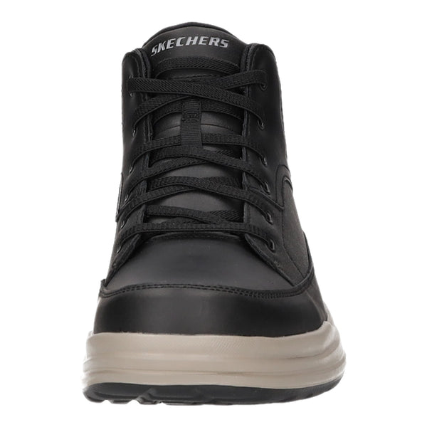 Die geringe Schafthöhe macht den Schuh zu einem optimalen Halbschuhersatz. Dieses Obermaterial ist ein echtes Highlight! Gefertigt aus schwarzem Leder. Der Schuh ist mit einem textilen Futtermaterial ausgestattet. Dank weicher textiler Decksohle bietet der Schuh einen sehr guten Tragekomfort. Die modische Laufsohle besteht aus leichtem und dämpfendem Kunststoff. SkechersAir-Cooled Memory Foam® Innensohle bietet ein angenehmes Fußklima. SkechersRelaxed Fit Schuhe bieten mehr Platz im Zehenbereich. SkechersHands Free Slip-Ins® - Einfach reinschlüpfen und los geht’s. Die Schuhe ohne Schnürsenkel lassen sich mühelos ohne Bücken anziehen.