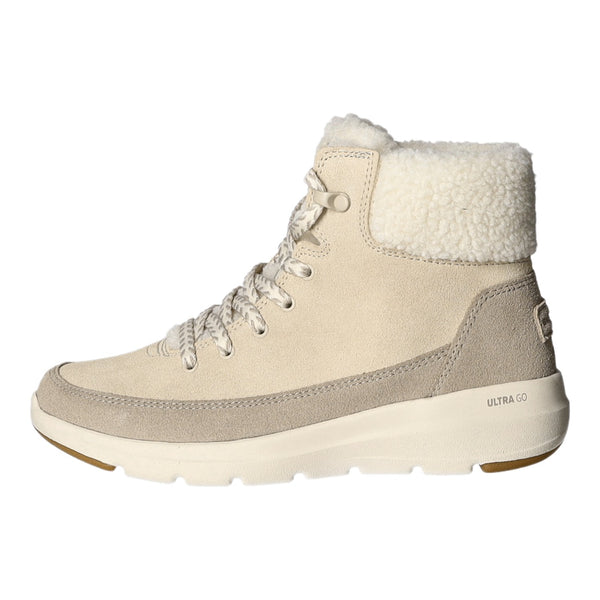Skechers - Perfekt für den Winter! Das Obermaterial besteht aus hochwertigem taupefarbenem Veloursleder und ist dank der verwendeten Scotchgard-Imprägnierung wasserabweisend. Das Futtermaterial besteht aus einem kurzen, sehr weichen Kunstfell. Das kurze Kunstfell der Decksohle sorgt für angenehm warme Füße. Die Laufsohle besteht aus leichtem und flexiblem Kunststoff. SkechersAir Cooled GOGA MAT® Technologie ist eine Einlegesohle die für einen angenehm kühlen Tragekomfort sorgt. SkechersULTRA GO® Max Cushioning für einen maximal Schaumstoff gepolsterten Tragekomfort.