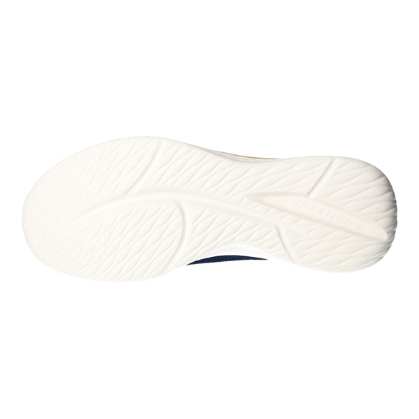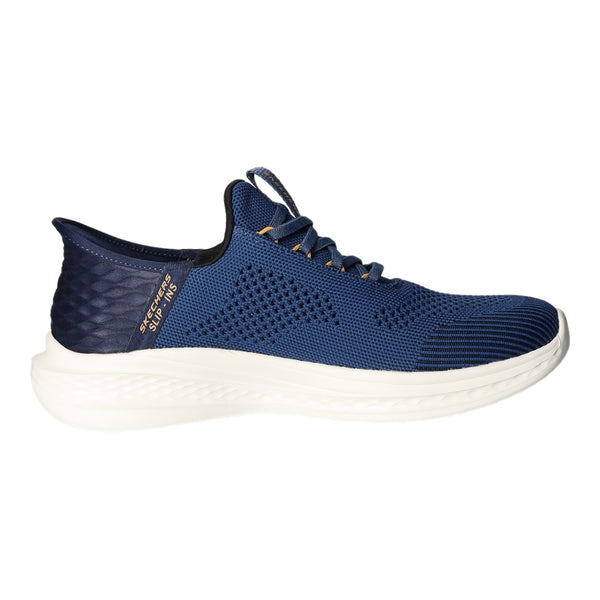 Skechers Hands Free Slip-Ins® - Einfach reinschlüpfen und los geht’s. Die Schuhe ohne Schnürsenkel lassen sich mühelos ohne Bücken anziehen und sind waschmaschinenfest. Gefertigt aus hochwertigem blauem Textilmesh in Strickoptik. Der Schuh ist mit einem textilen Futtermaterial ausgestattet. Dank weicher textiler Decksohle bietet der Schuh einen sehr guten Tragekomfort. Die sportliche Laufsohle besteht aus leichtem und dämpfendem Kunststoff. SkechersAir-Cooled Memory Foam® Innensohle bietet ein angenehmes Fußklima. SkechersGogaMat®-Technologie gewährleistet durch eine flexibel unterteilte Sohle eine perfekte Anpassung sowohl am Fuß als auch im Gelände.